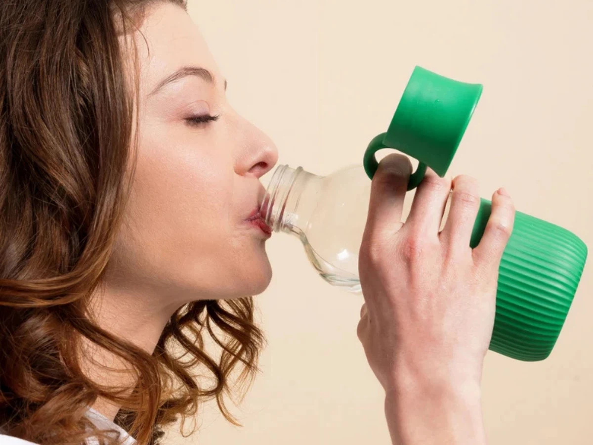 Cette gourde en verre permet de remplacer les bouteilles plastiques par une solution durable et réutilisable.