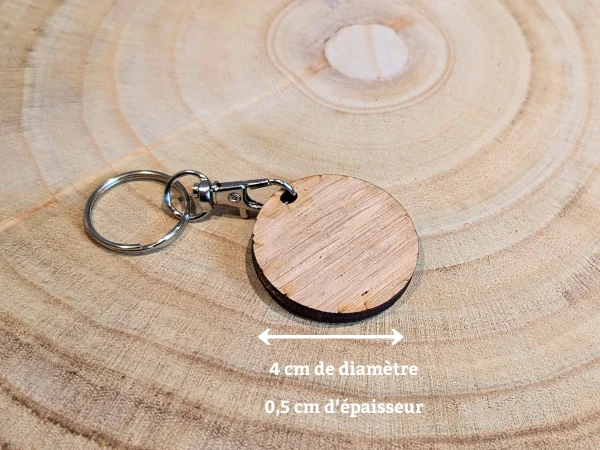 ℹ️ Matériaux et infos du porte-clés en bois