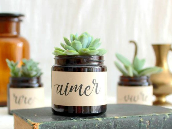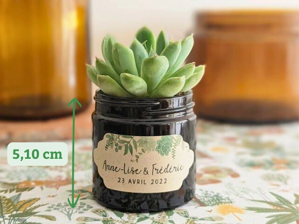 Cultivée en Provence et présentée dans un petit pot en verre recyclé ambré, cette adorable petite succulente se personnalise selon vos envies : avec vos prénoms, la date, un visuel, un message.