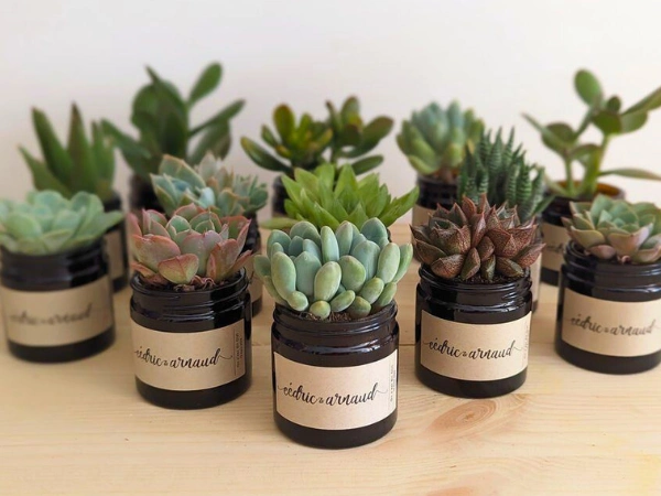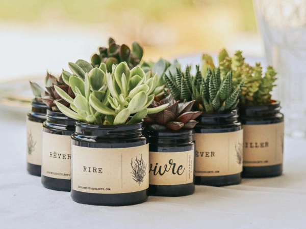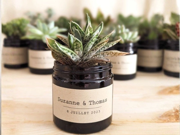 Facile à entretenir et peu gourmande en eau, cette jolie plante grasse devient un souvenir vivant que vos proches conserveront longtemps après votre union.